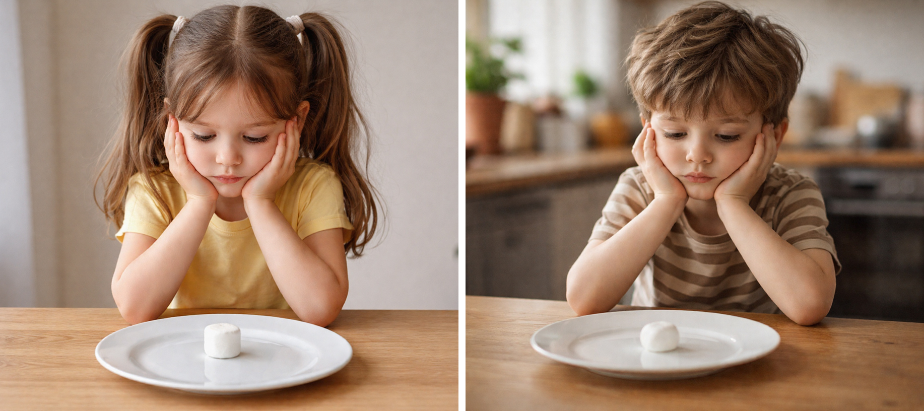 В этом эксперименте четырёхлетним детям предлагали одну конфету сразу или две, если они подождут 15 минут. Дети, которые смогли контролировать свои импульсы и дождаться второй конфеты, спустя годы продемонстрировали лучшие результаты в школе, более крепкое здоровье и успешную карьеру.